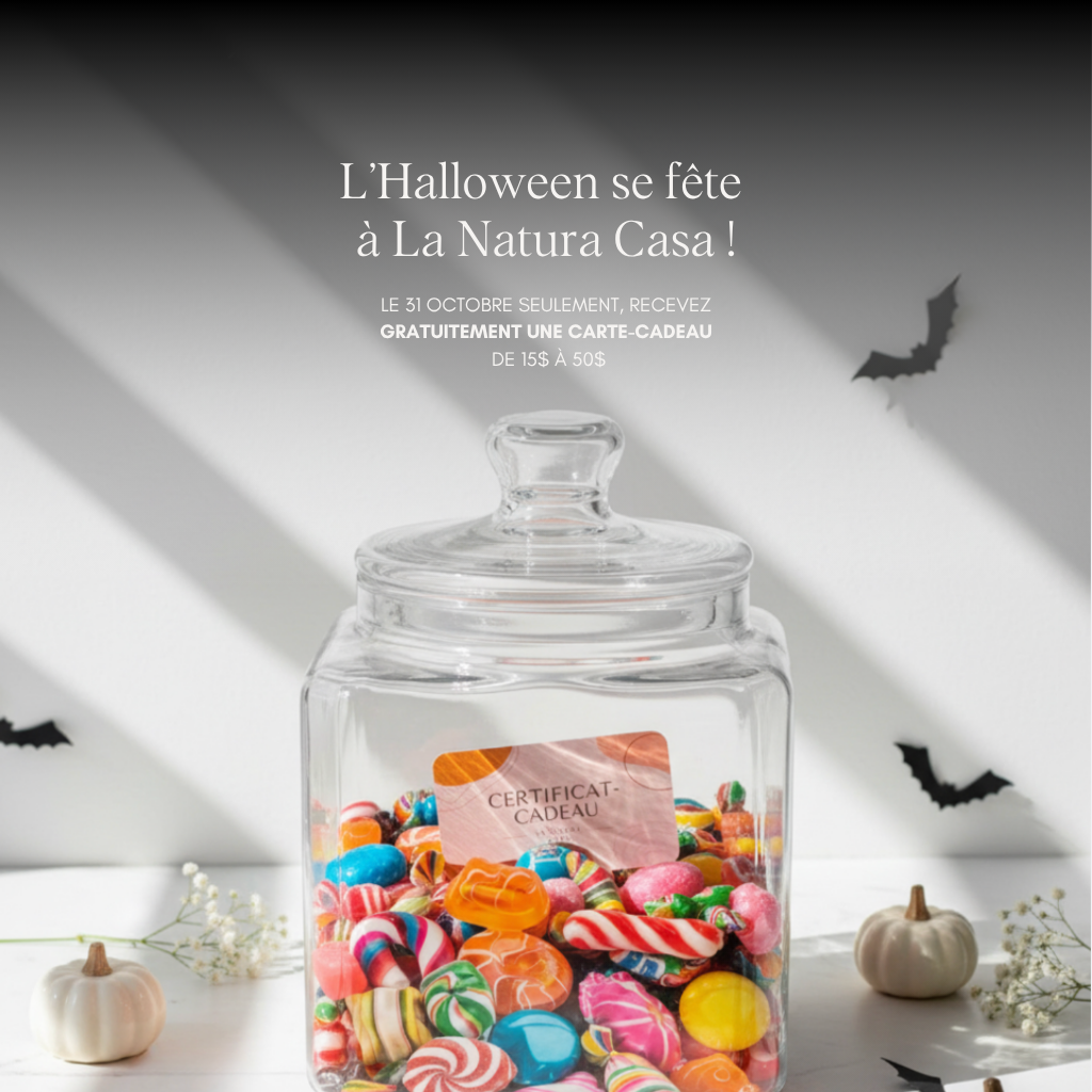 CONDITIONS DE LA PROMOTION : Offre valable le 31 octobre 2025 seulement. Le montant de la carte-cadeau est aléatoire, variant de 15 $ à 50 $. La carte-cadeau sera envoyée physiquement dans votre colis. Conservez-la précieusement — elle est nécessaire pour l’utiliser en ligne ou en boutique. Aucune carte-cadeau perdue ne sera remplacée. Aucune modification ne sera apportée aux commandes passées avant ou après la période de promotion.