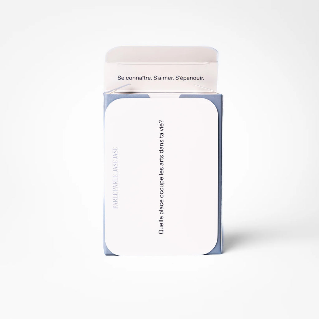 Faites-vous un cadeau et utilisez PARLE PARLE JASE JASE CONNAISSANCE DE SOI pour alimenter votre pratique de journaling ou simplement en pigeant une carte le matin au réveil.
