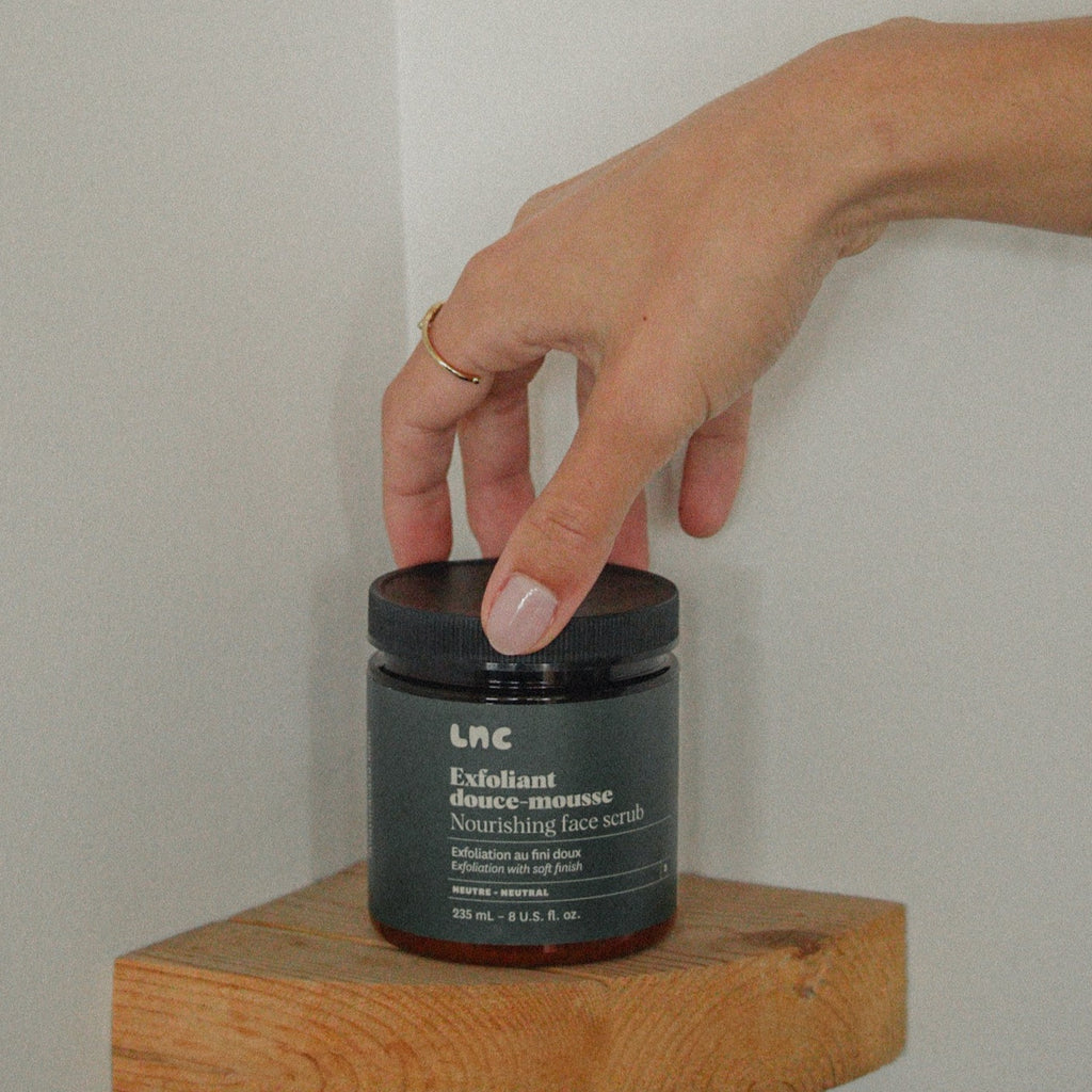 L'Exfoliant Douce-Mousse contient des ingrédients de qualité qui apportent une exfoliation complète, mais au fini très doux. Il suffit d'y ajouter un peu d'eau pour que le tout devienne moussant!