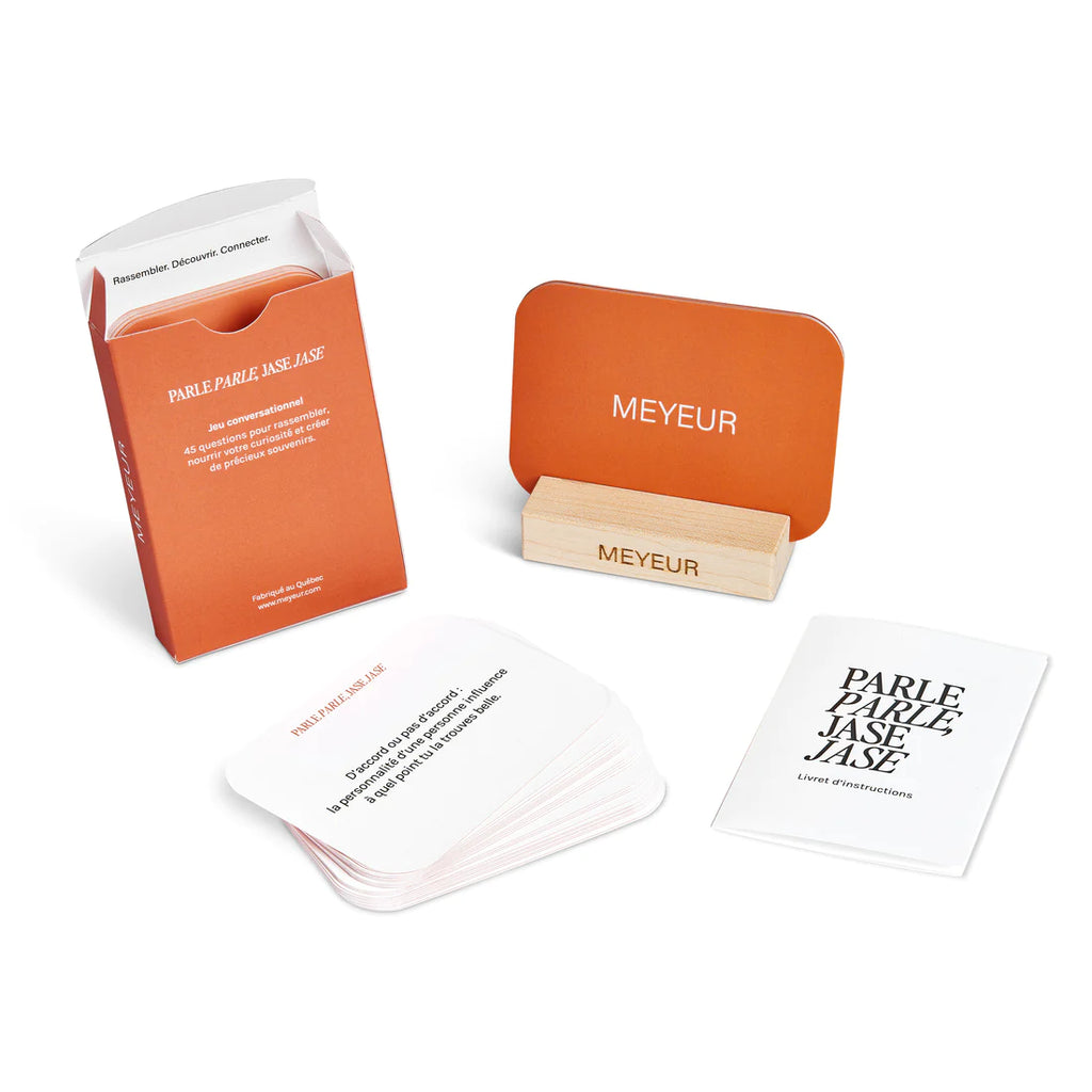 Amène PARLE PARLE, JASE JASE lors de ton prochain « roadtrip », tes soirées autour d’un feu ou sorties entre amis.