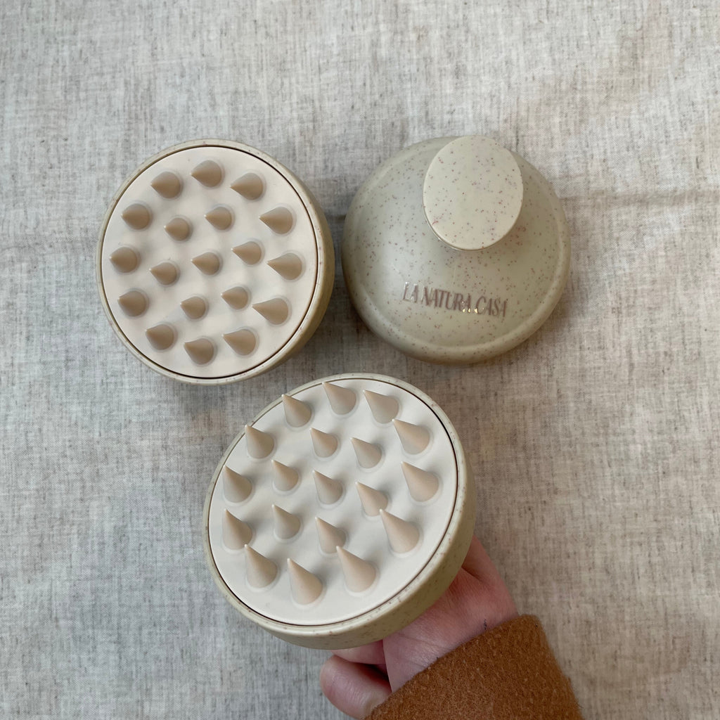 The small silicone teeth ensure the durability of the brush and provide a gentle and stimulating massage. This allows a sort of mechanical exfoliation by reducing irritation and dead skin that can accumulate in the scalp region.