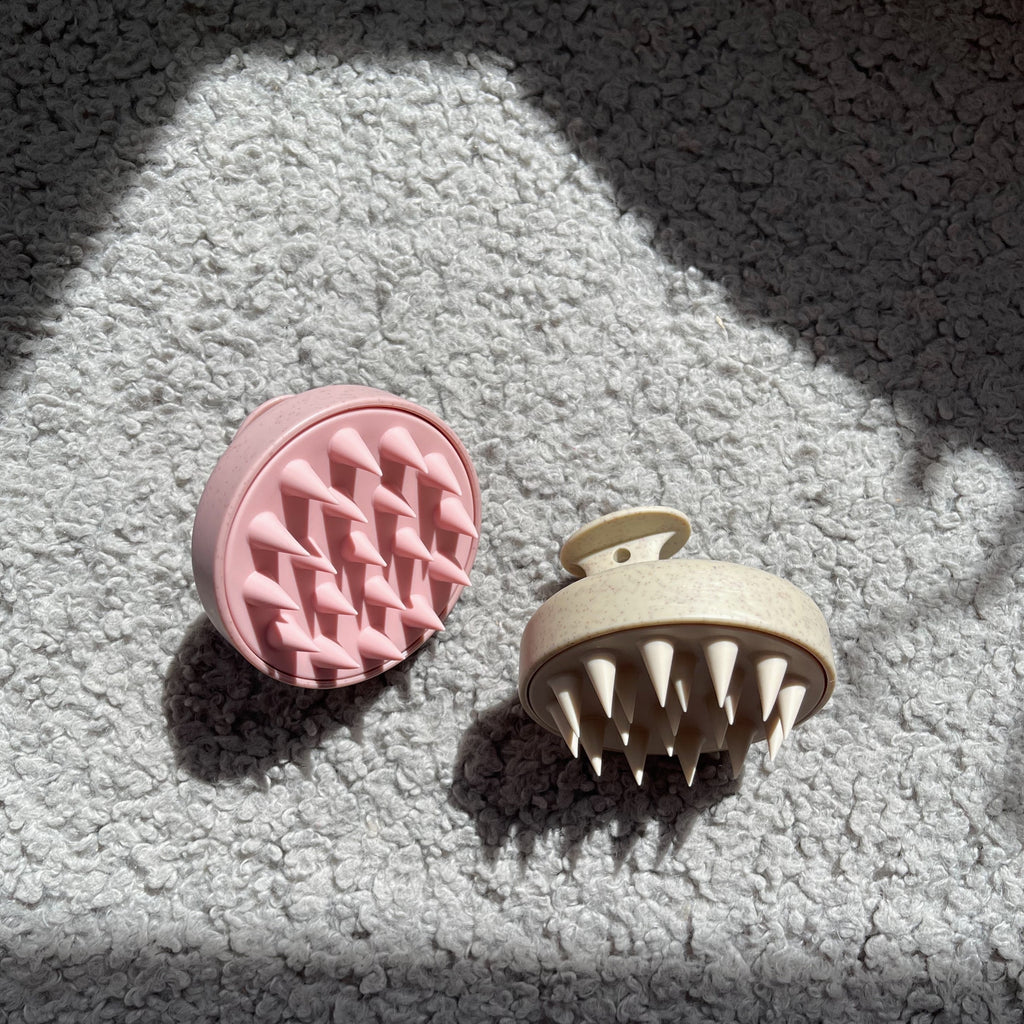 This scalp brush helps stimulate scalp cells, which increases blood flow and promotes nutrient distribution throughout the scalp and hair roots. It is made of wheat straw and silicone.