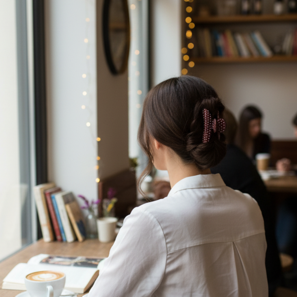 Ajoutez une touche rétro-chic à vos coiffures avec notre pince à cheveux Polka Dot. Son motif à pois intemporel et son design tendance en font l’accessoire parfait pour sublimer vos looks au quotidien 🤍