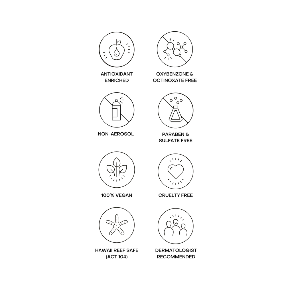 Avobenzone 3%, Homosalate (7.5% in SPF 30) (10% in SPF 50), Octisalate 5%, Octocrylene 5%